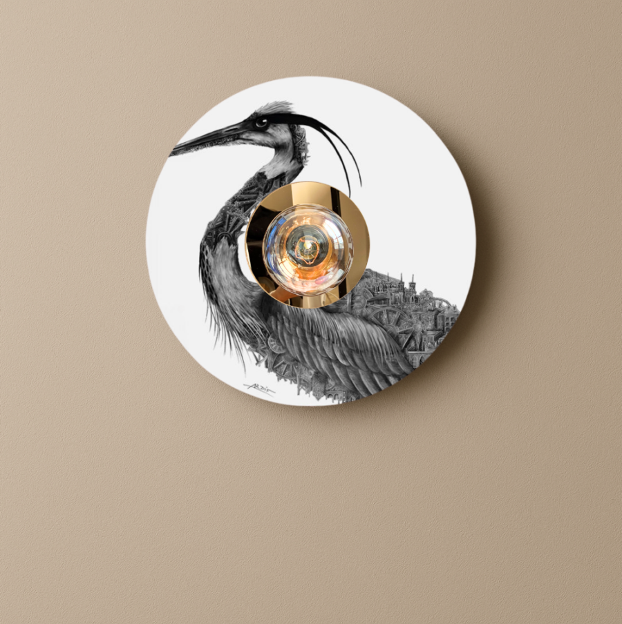 Éclairez votre intérieur avec ce luminaire de créateur, conçu en collaboration avec l’artiste français Ardif. 100 % made in France et en édition limitée, cette applique murale au design rond est parfaite pour une décoration intérieure moderne et ravira les amateurs d’Art en recherche d’une décoration originale et unique. Laissez-vous porter par l’univers unique d’Ardif avec ce majestueux héron mécanique, où précision et créativité s’entrelacent avec élégance. Une luminaire comme un tableau d’artiste pour décorer vos mur en soutenant la création artistique. Sa série des “mechanimals” est l’illustration de cet univers graphique et est visible sur les murs de la capitale depuis 2016. L’applique murale vous est livrée avec son kit de fixation.